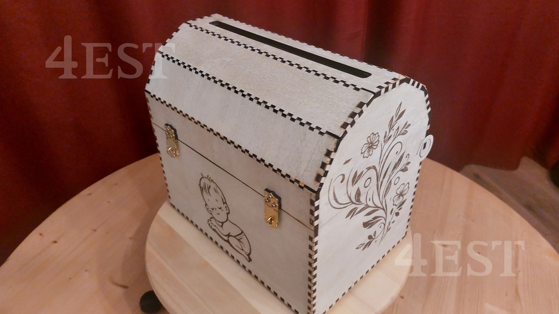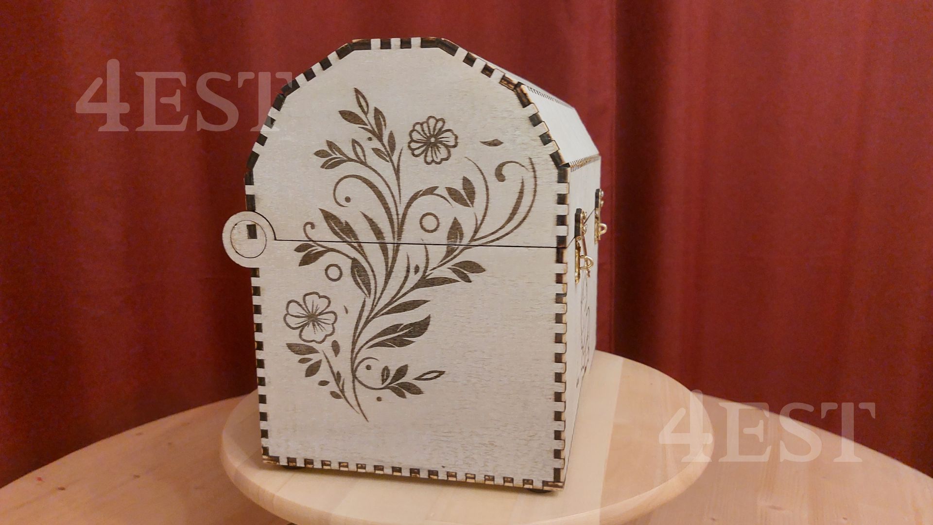 Here is the Event Gift/Envelope Box, a beautifully crafted container designed to hold gifts or envelopes for special occasions. This box is made from 6mm plywood and assembled using precise laser-cutting technology, ensuring both durability and an elegant appearance.