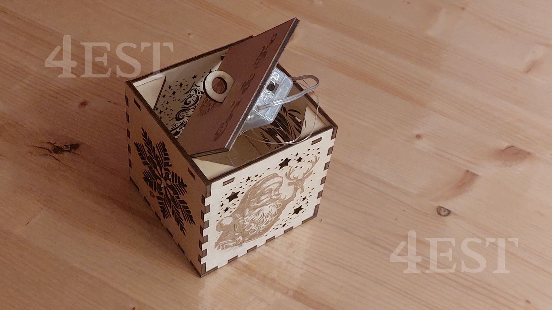 Bring the magic of the holidays into your home with Christmas Cube v1, an elegant and modern decorative piece enhanced by built-in LED lights. Crafted with precision from 4mm plywood and cut using state-of-the-art laser technology, this cube impresses with its intricate details and high-quality finish.