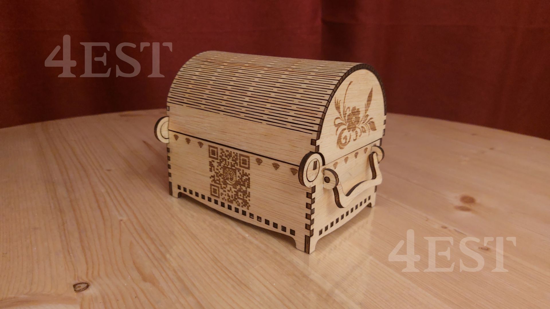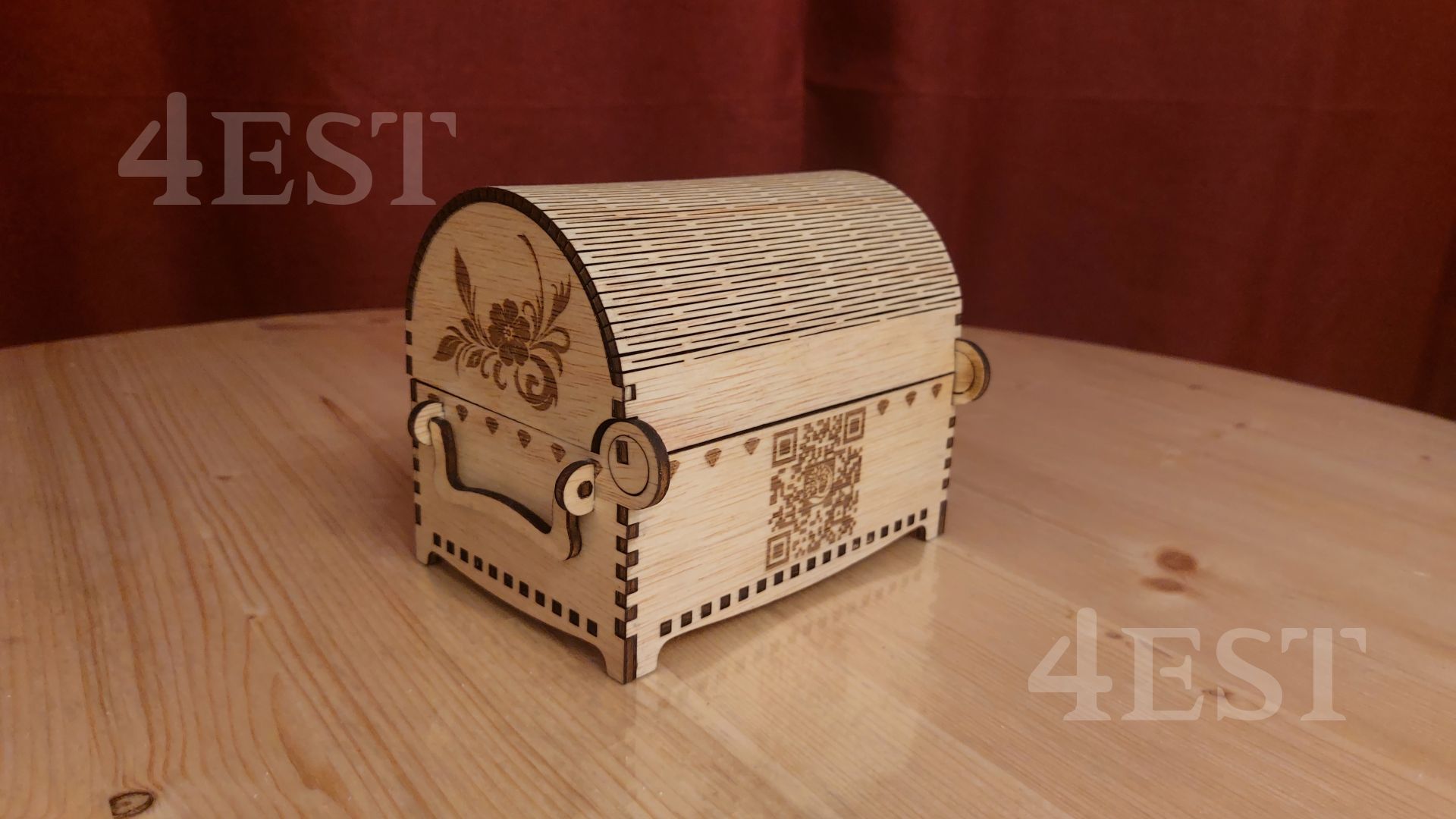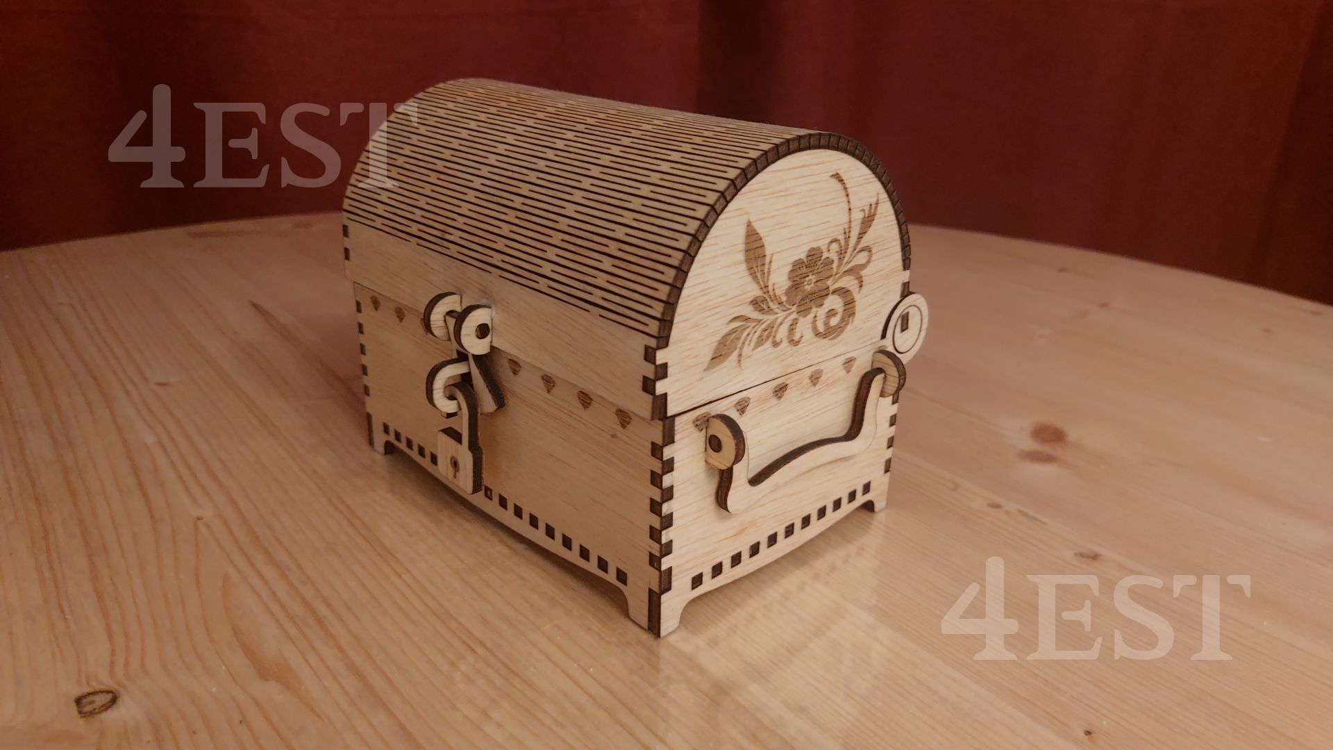 Discover the charm of this handcrafted wooden treasure chest, designed with intricate laser-cut details and a gracefully curved lid. Made from high-quality plywood, this exquisite chest is perfect for storing your most treasured keepsakes.