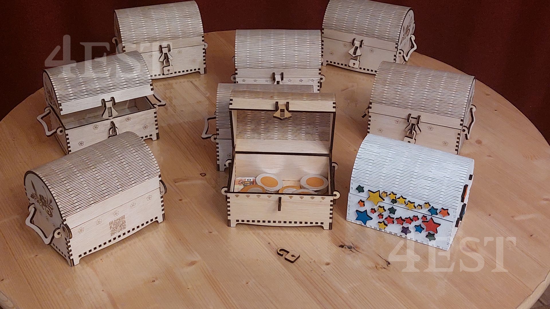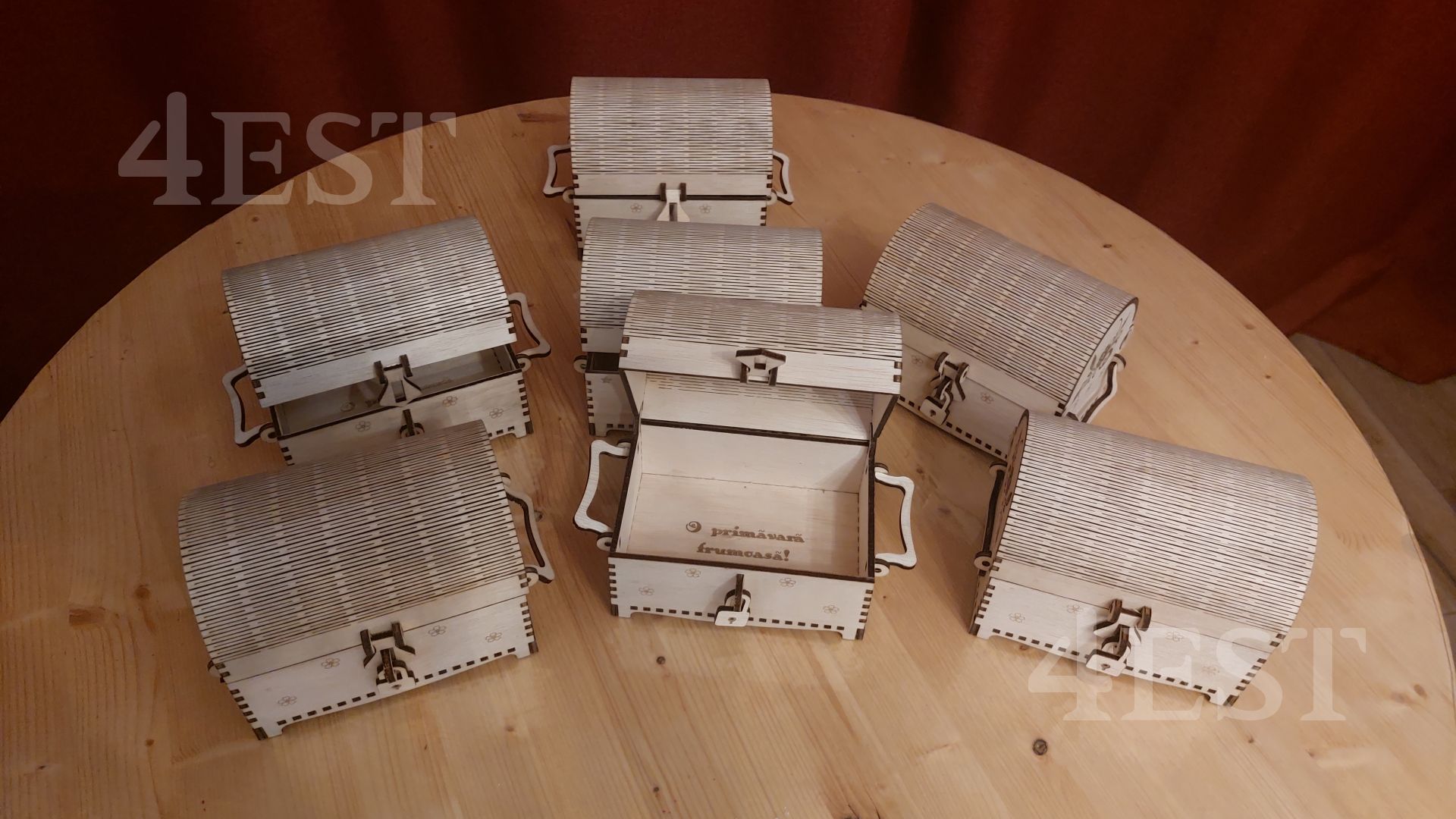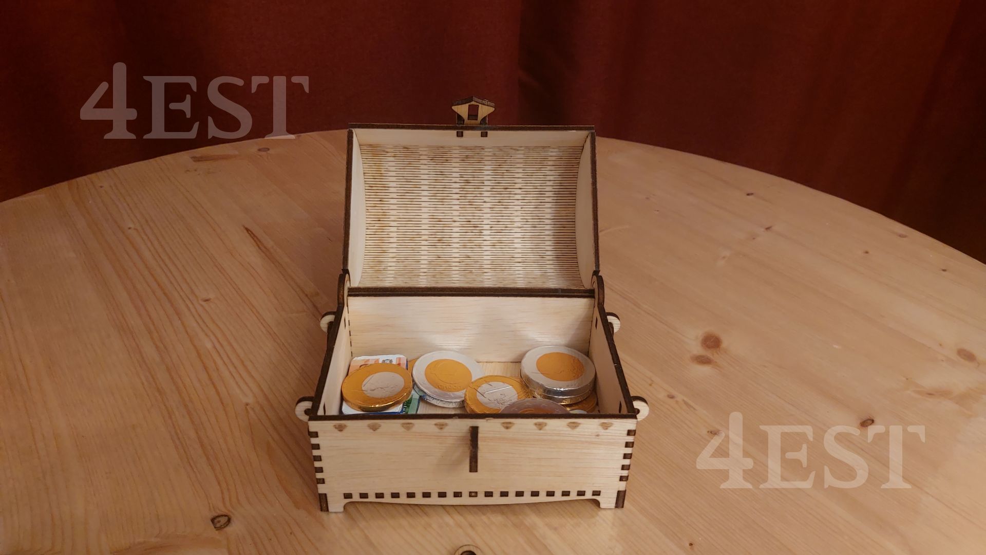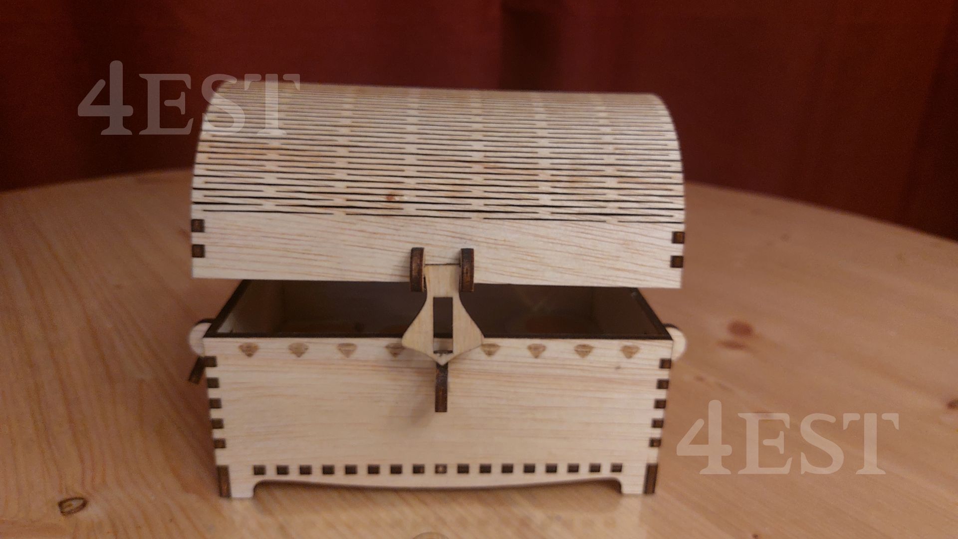 Discover the charm of this handcrafted wooden treasure chest, designed with intricate laser-cut details and a gracefully curved lid. Made from high-quality plywood, this exquisite chest is perfect for storing your most treasured keepsakes.